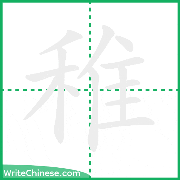 Learn to write the Chinese character "稚" by watching the stroke order animation of "稚".