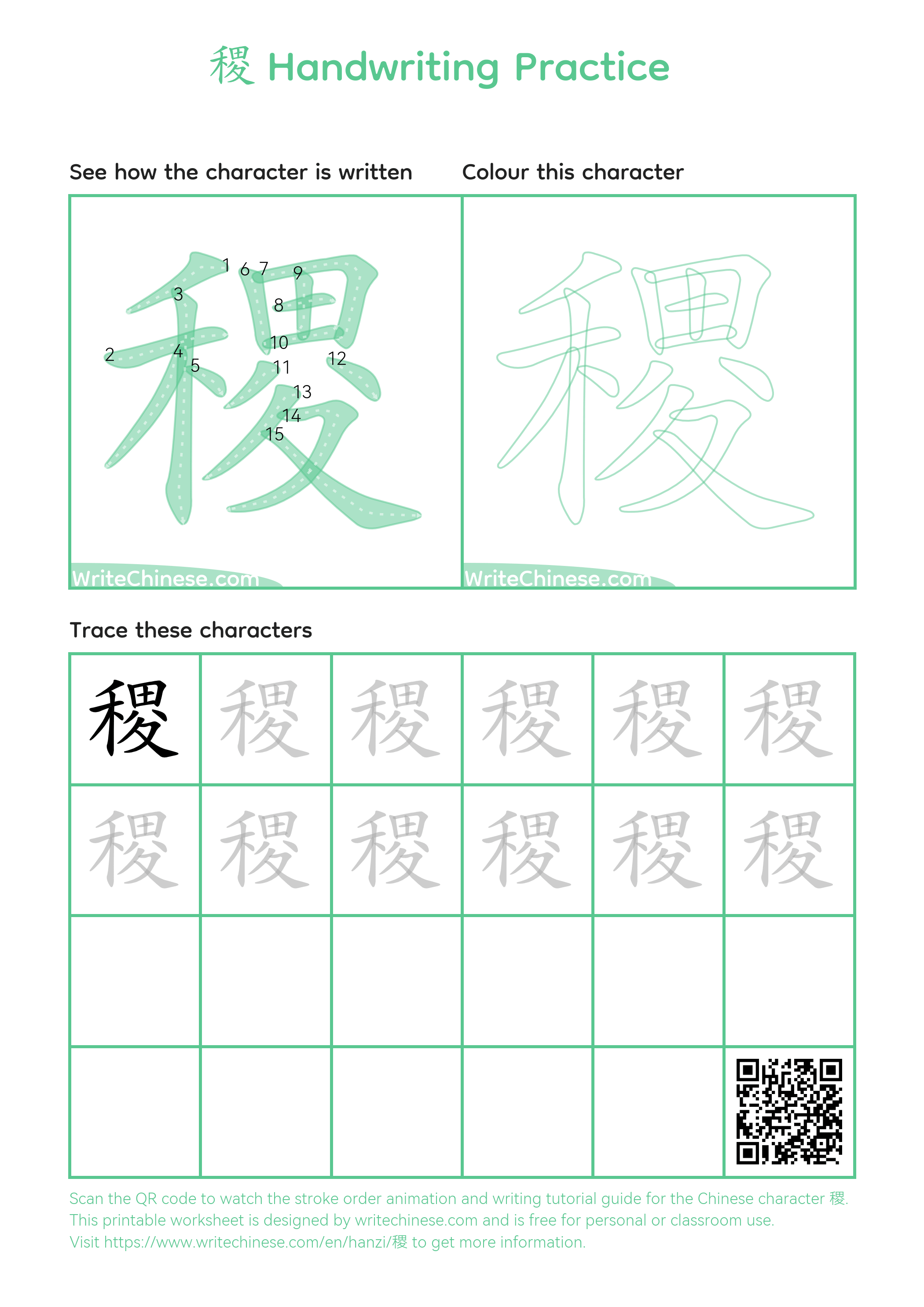 Printable Stroke Order Practice Worksheet of the Chinese character 稷