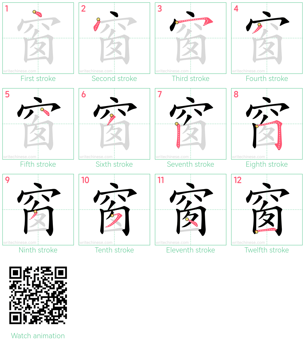 Printable Stroke Order Practice Worksheet of the Chinese character 窗