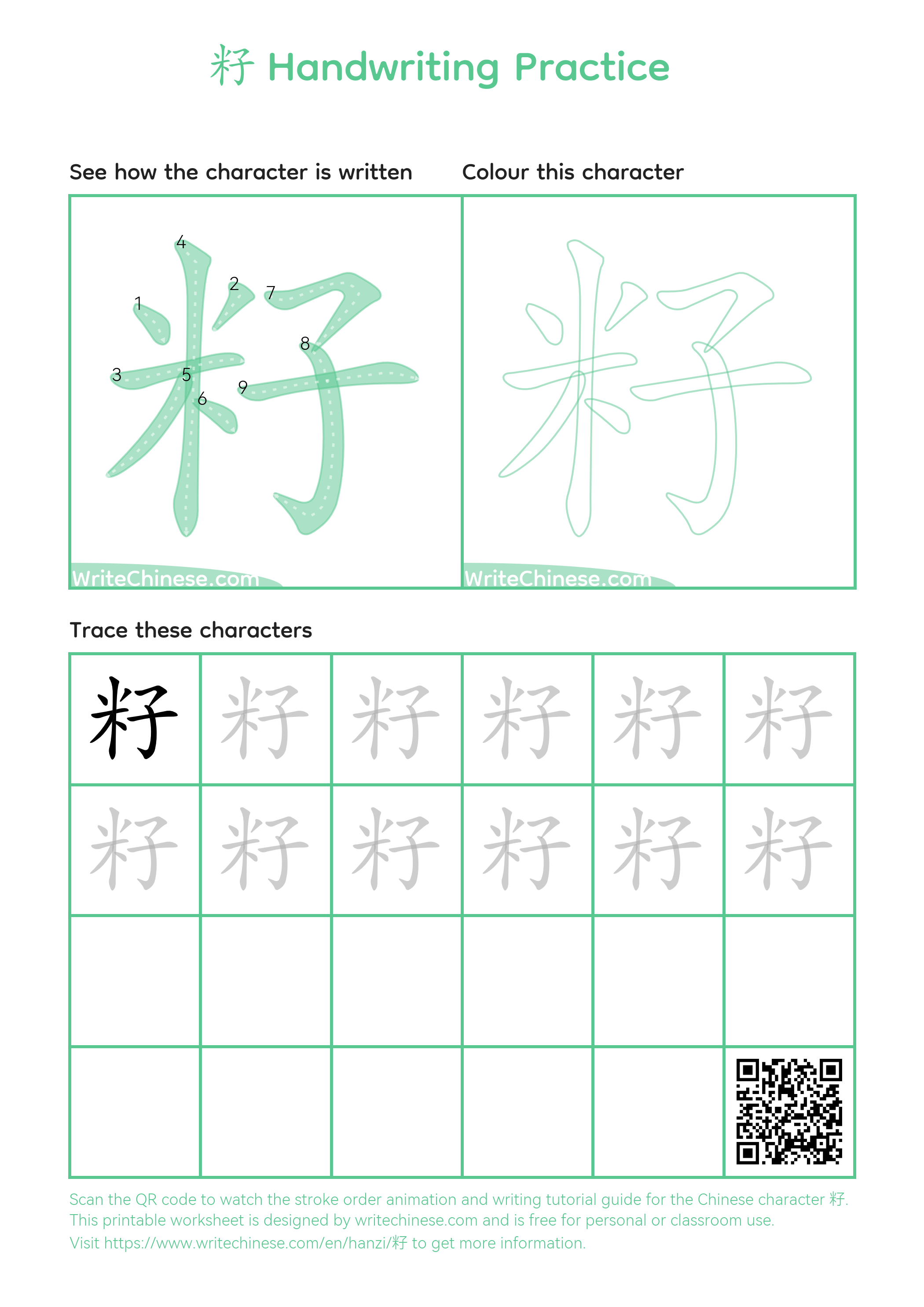 Learn the proper way to write the Chinese character '籽' through a video tutorial with a calligraphy teacher. Follow the Calligraphy Master's Step-by-Step Guide to Write the Chinese Character '籽'. You can download the printable handwriting worksheets below and practice writing together with pen and paper.