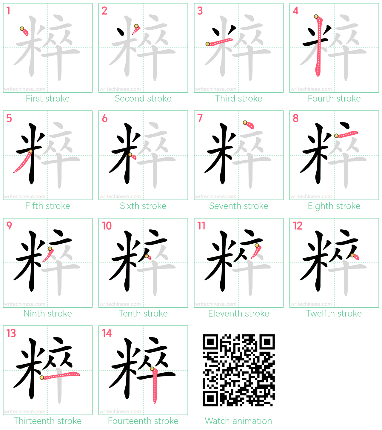 Master the Chinese character '粹' stroke by stroke with visual step-by-step instructions.