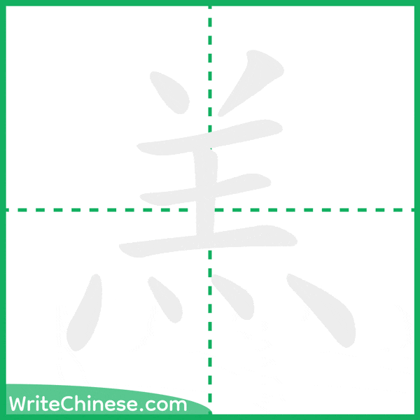 造字法: 会意。从羊,从火,下面的四点由“火”变来。甲骨文字形正象羊在火上 – The character formation is associative, depicting a sheep and fire, resembling a sheep over fire in oracle bone script.