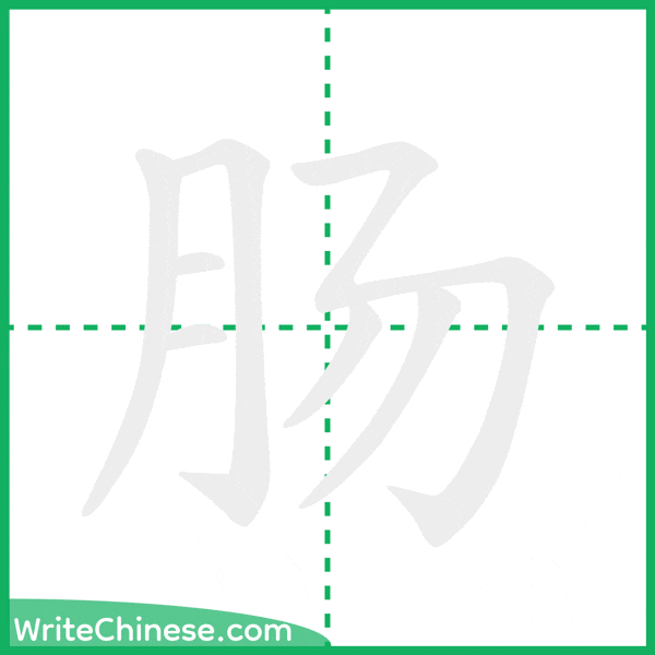 Master the Chinese character '肠' stroke by stroke with visual step-by-step instructions.