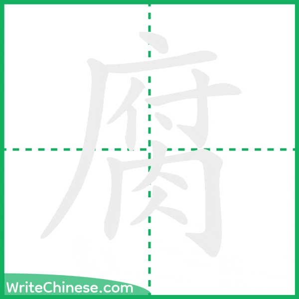 Learn to write the Chinese character "腐" by watching the stroke order animation of "腐".
