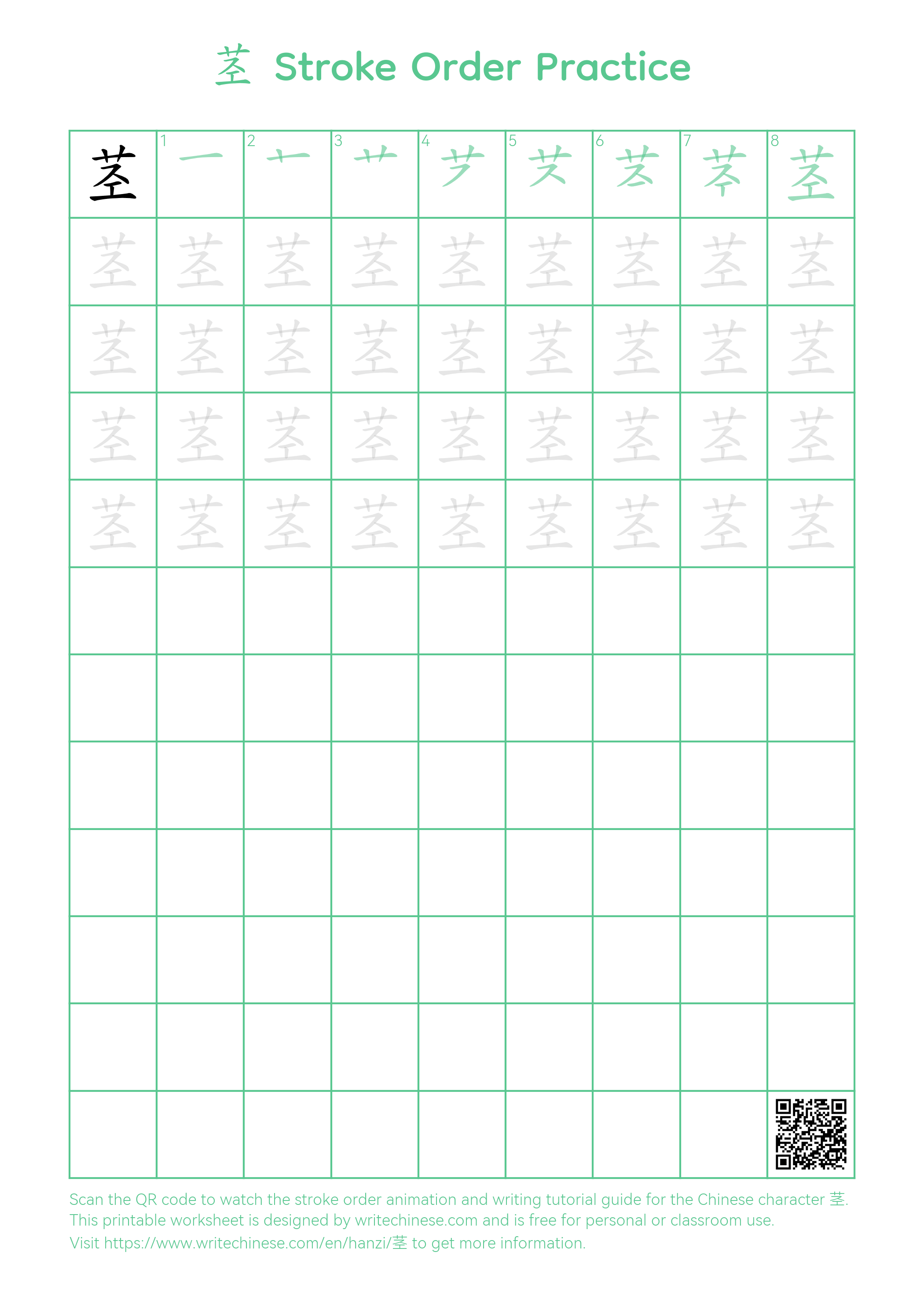Master the Chinese character '茎' stroke by stroke with visual step-by-step instructions.