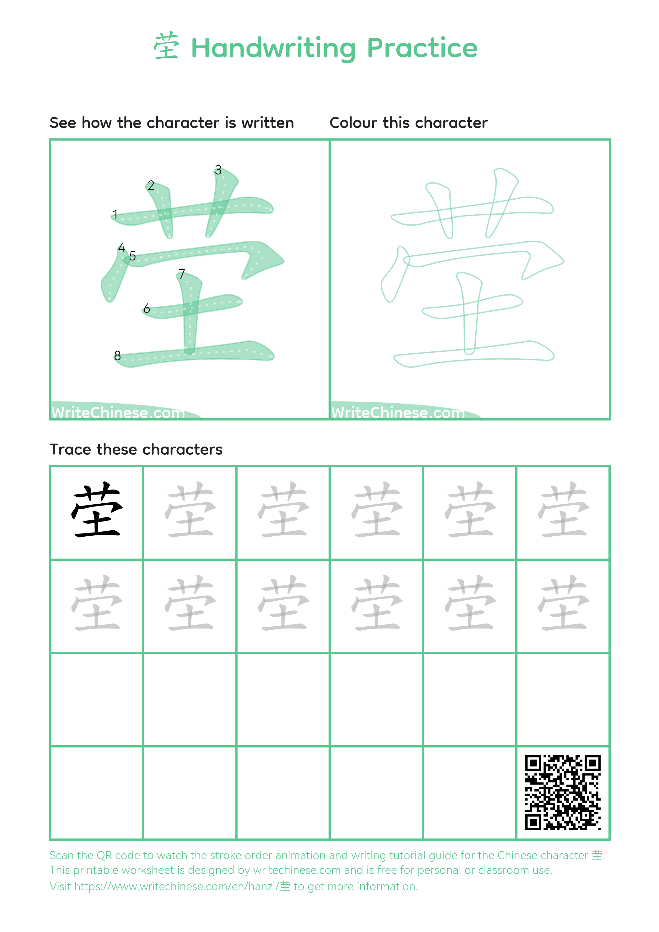 Chinese Character '茔'. You can download the printable handwriting worksheets below and