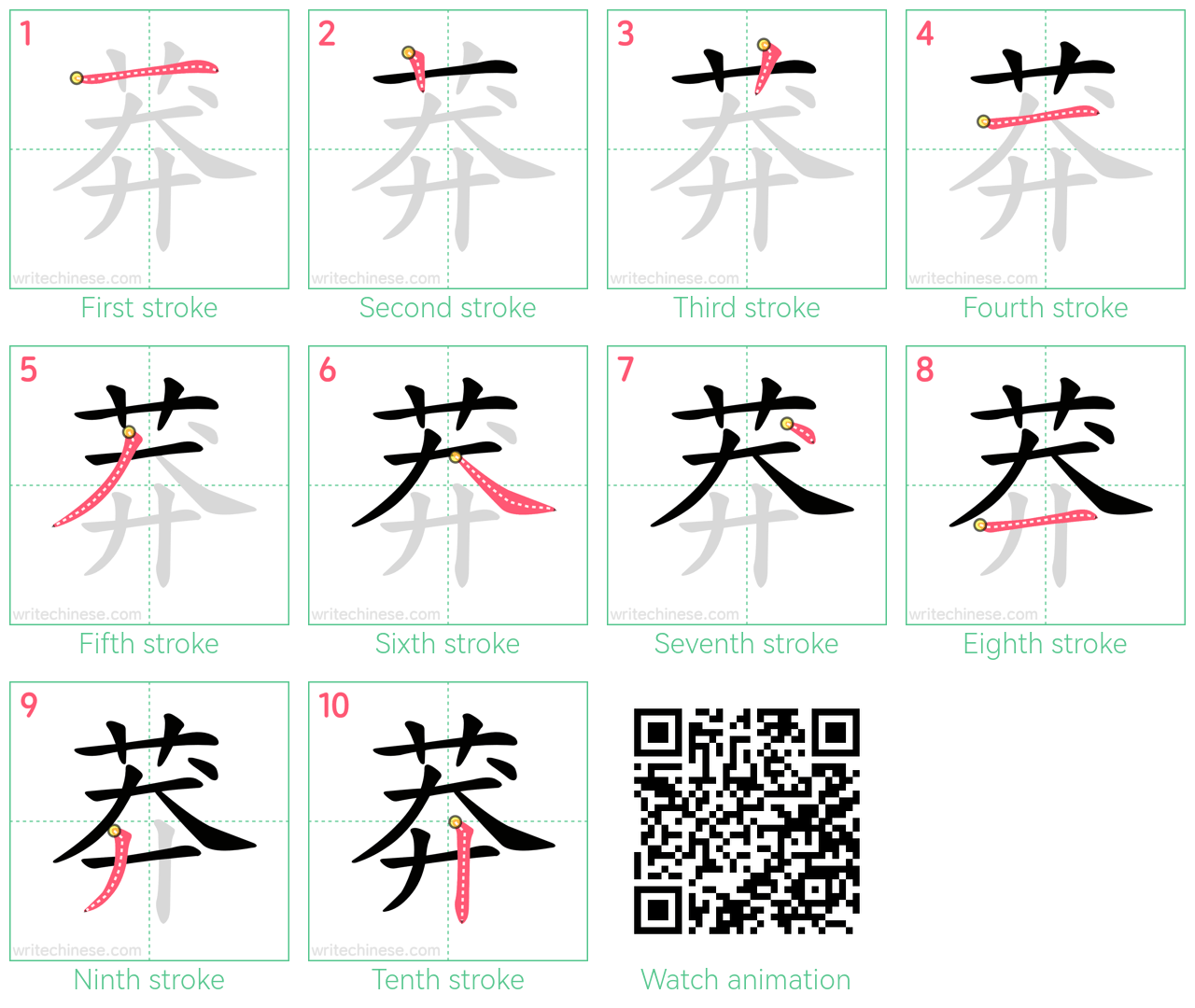 Learn to write the Chinese character "莽" by watching the stroke order animation of "莽".