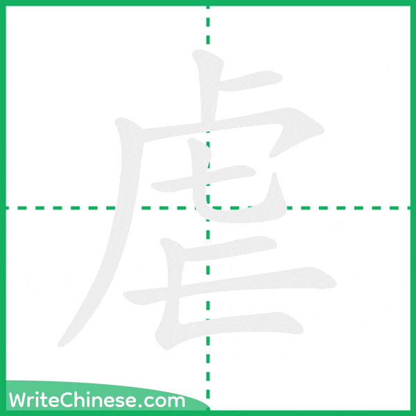 Learn to write the Chinese character "虐" by watching the stroke order animation of "虐".