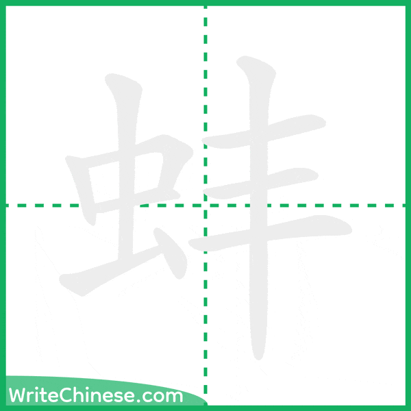 Learn to write the Chinese character "蚌" by watching the stroke order animation of "蚌".