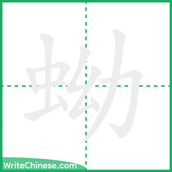 Learn to write the Chinese character "蚴" by watching the stroke order animation of "蚴".