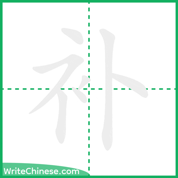 Printable Stroke Order Practice Worksheet of the Chinese character 补