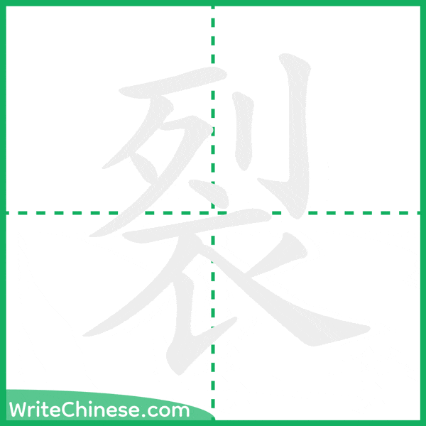 Learn to write the Chinese character "裂" by watching the stroke order animation of "裂".