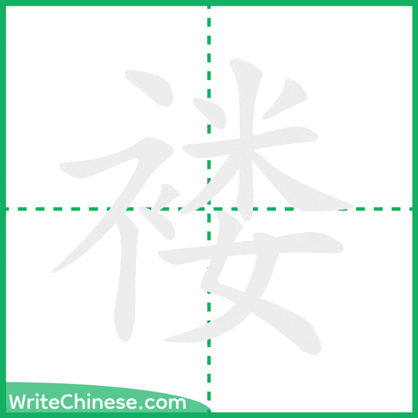 Learn to write the Chinese character "褛" by watching the stroke order animation of "褛".