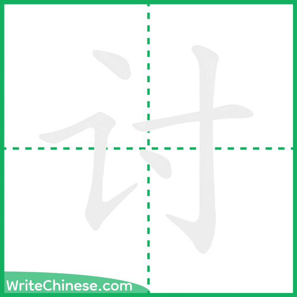 Learn to write the Chinese character "讨" by watching the stroke order animation of "讨".