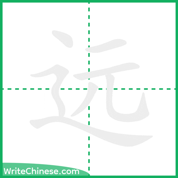 Learn to write the Chinese character "远" by watching the stroke order animation of "远".