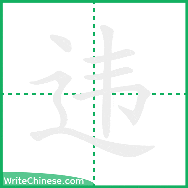 Master the Chinese character '违' stroke by stroke with visual step-by-step instructions.