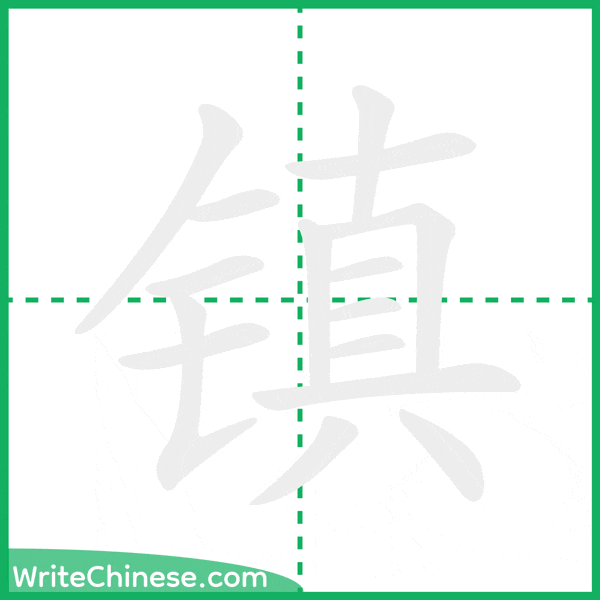Learn to write the Chinese character "镇" by watching the stroke order animation of "镇".