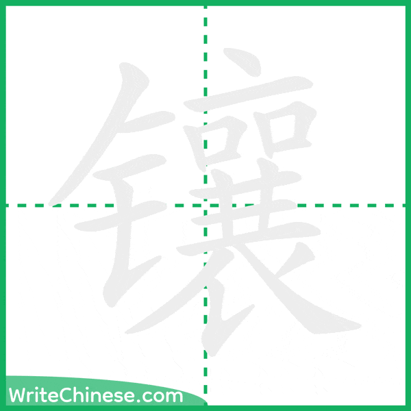 Learn to write the Chinese character "镶" by watching the stroke order animation of "镶".