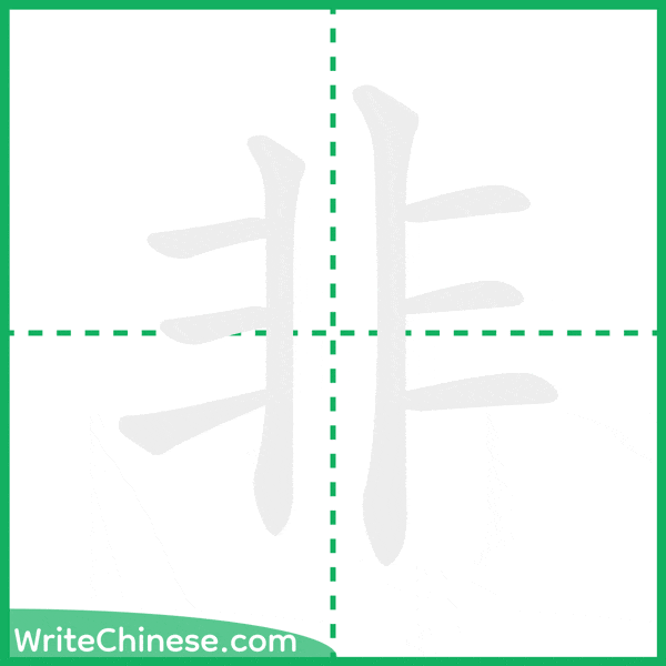 Learn to write the Chinese character "非" by watching the stroke order animation of "非".