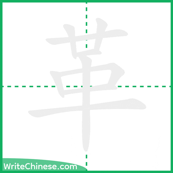 Learn to write the Chinese character "革" by watching the stroke order animation of "革".