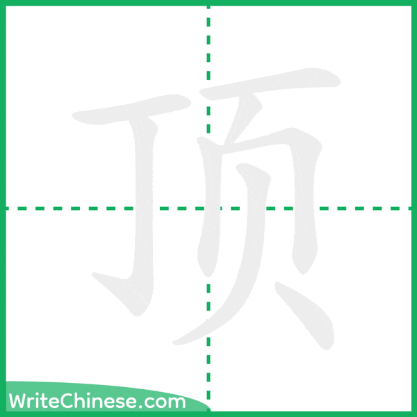 Master the Chinese character '顶' stroke by stroke with visual step-by-step instructions.