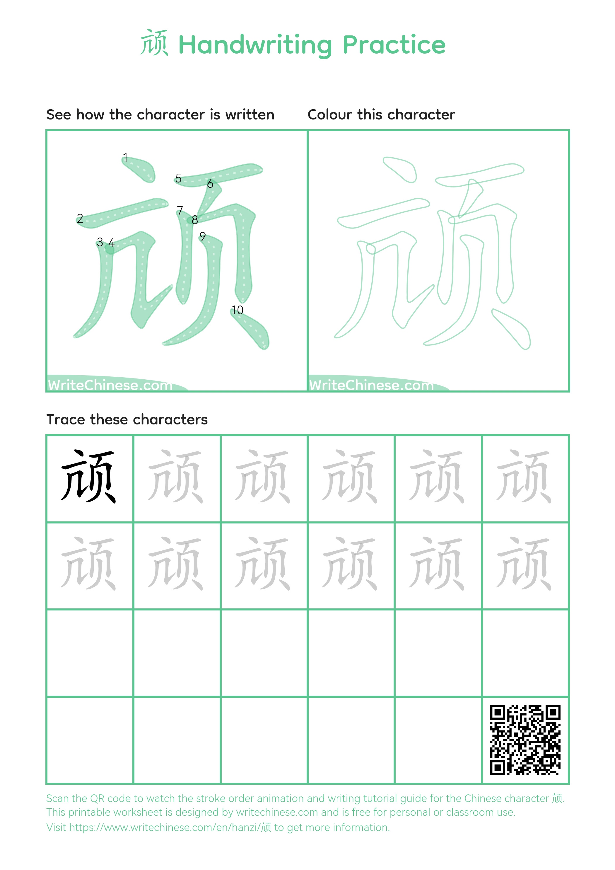 Learn the proper way to write the Chinese character '颃' through a video tutorial with a calligraphy teacher. Follow the Calligraphy Master's Step-by-Step Guide to Write the Chinese Character '颃'. You can download the printable handwriting worksheets below and practice writing together with pen and paper.