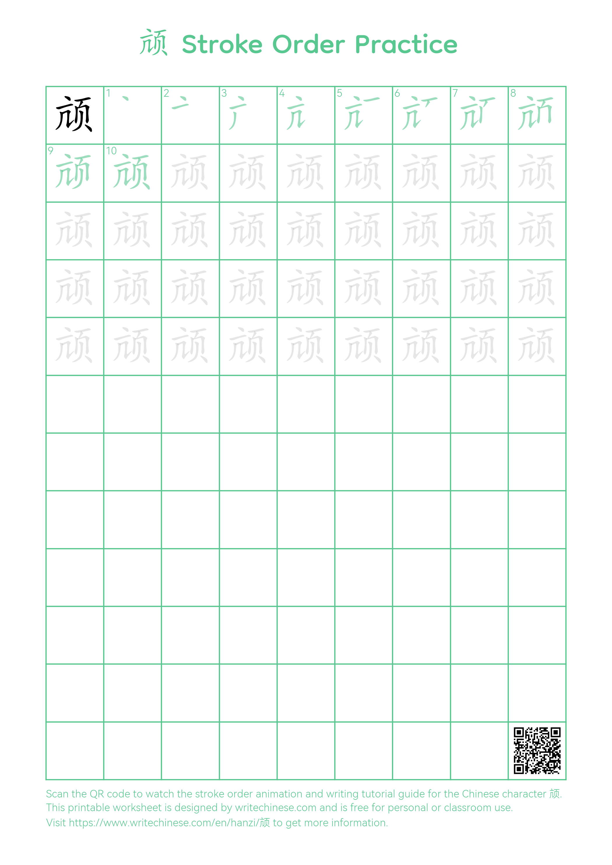 Master the Chinese character '颃' stroke by stroke with visual step-by-step instructions.