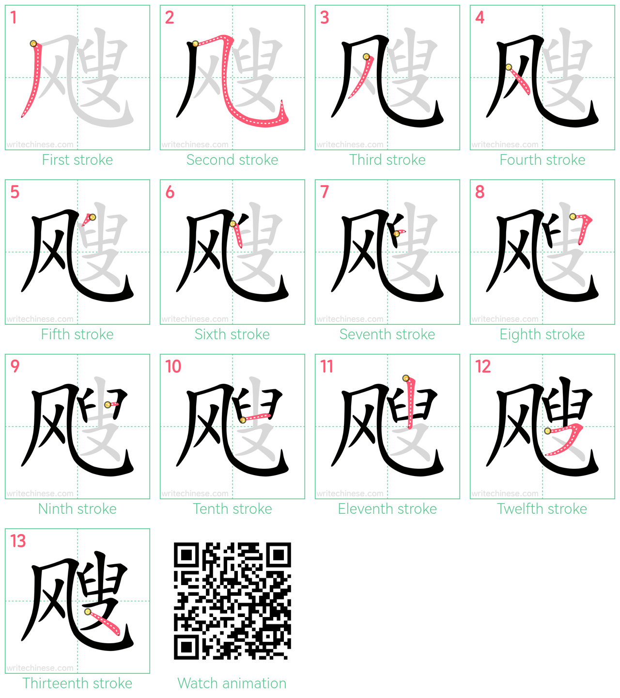 Printable Stroke Order Practice Worksheet of the Chinese character 飕