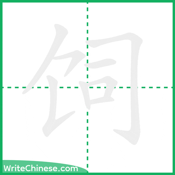 Learn to write the Chinese character "饲" by watching the stroke order animation of "饲".