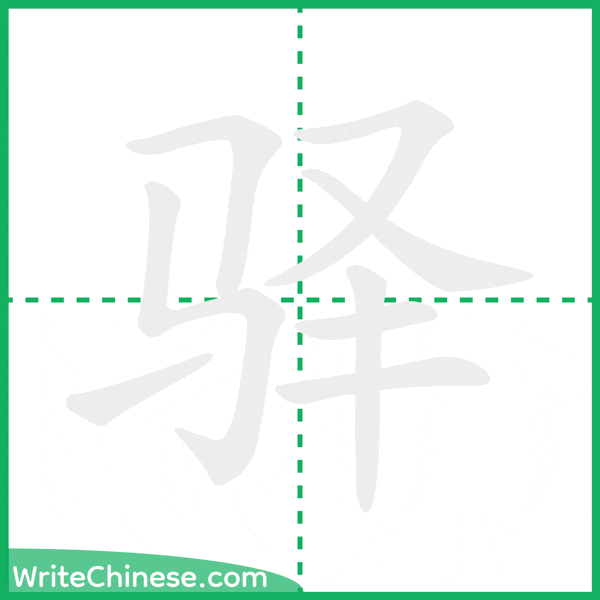 Learn to write the Chinese character "驿" by watching the stroke order animation of "驿".
