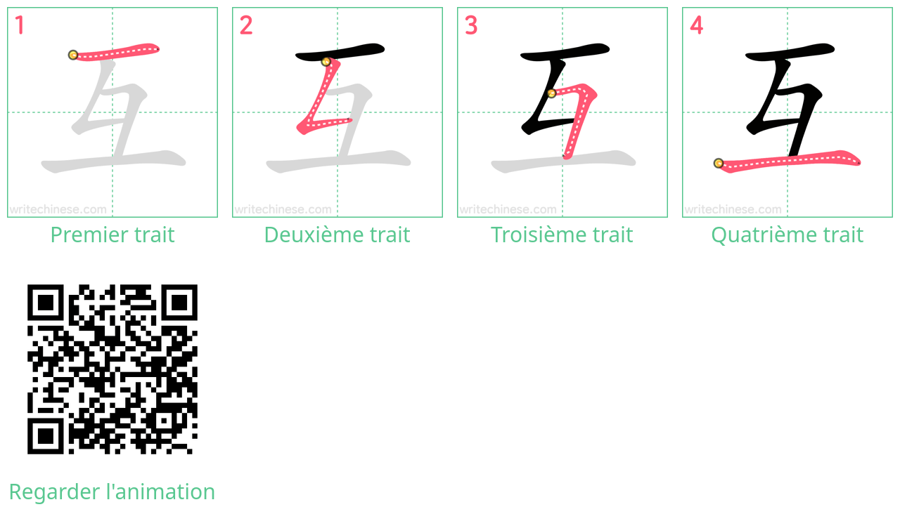 Apprenez à écrire le caractère chinois "互" en regardant l'animation de l'ordre des traits