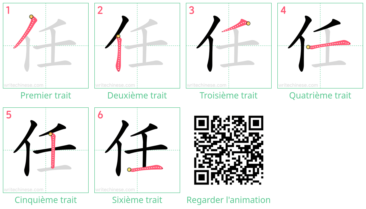 Apprenez à écrire le caractère chinois "任" en regardant l'animation de l'ordre des traits