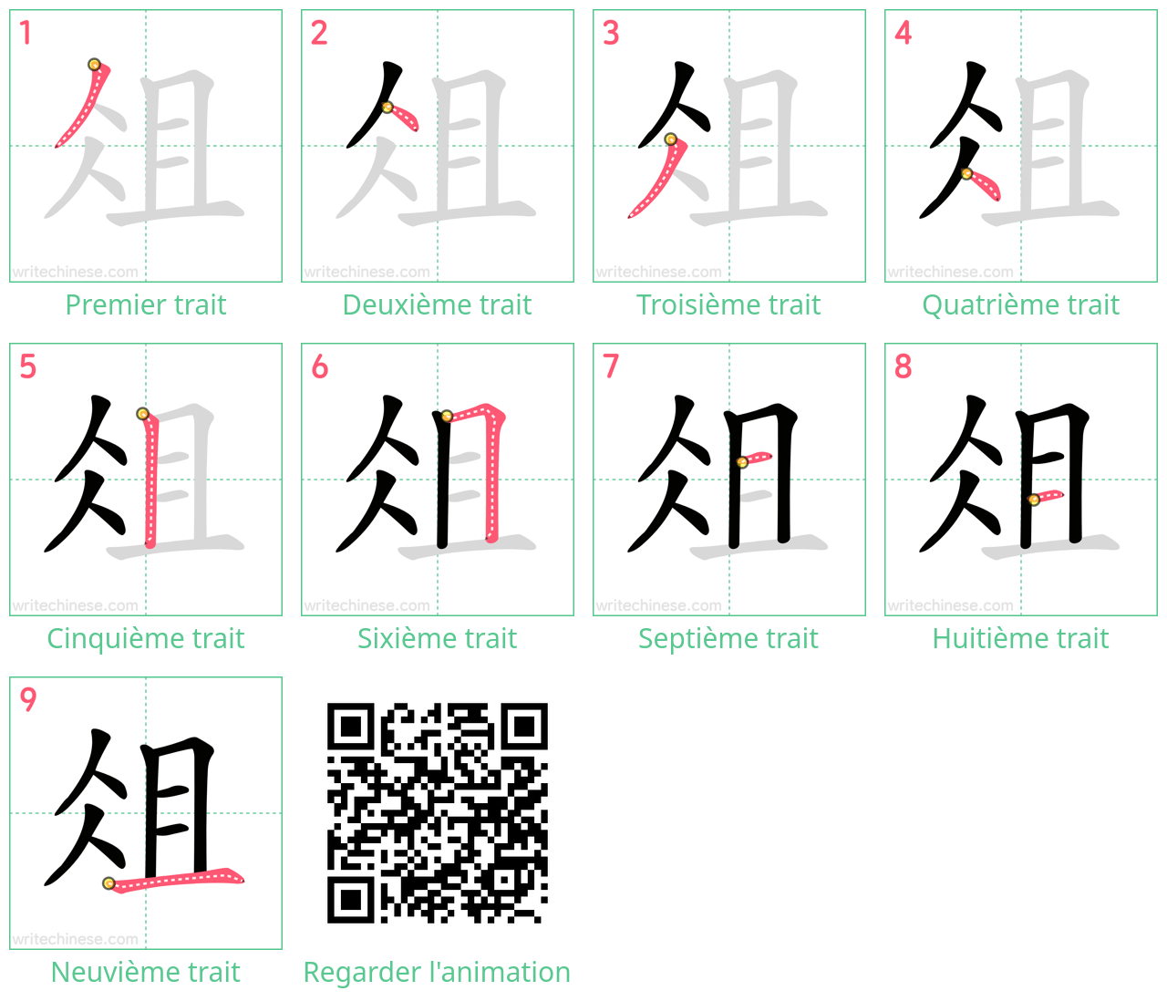 Apprenez à écrire le caractère chinois "俎" en regardant l'animation de l'ordre des traits