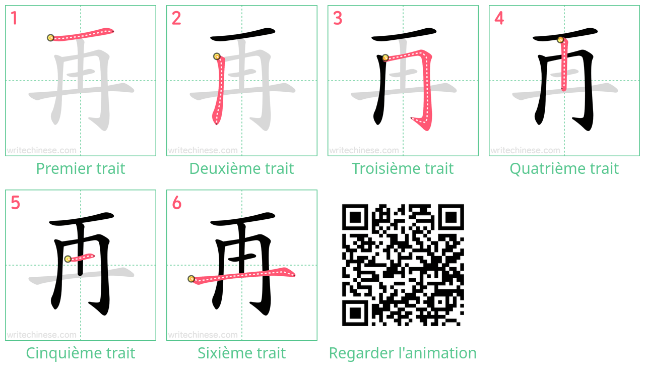 Apprenez à écrire le caractère chinois "再" en regardant l'animation de l'ordre des traits