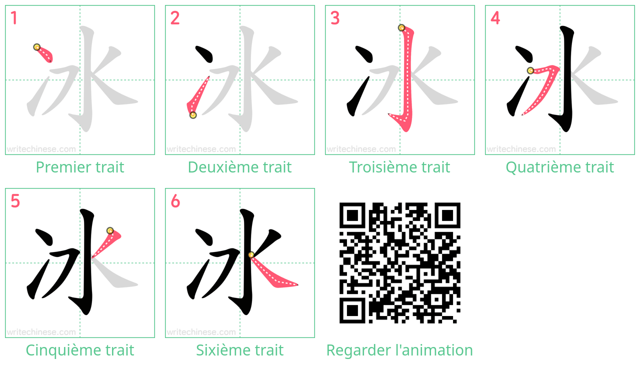 Apprenez à écrire le caractère chinois "冰" en regardant l'animation de l'ordre des traits