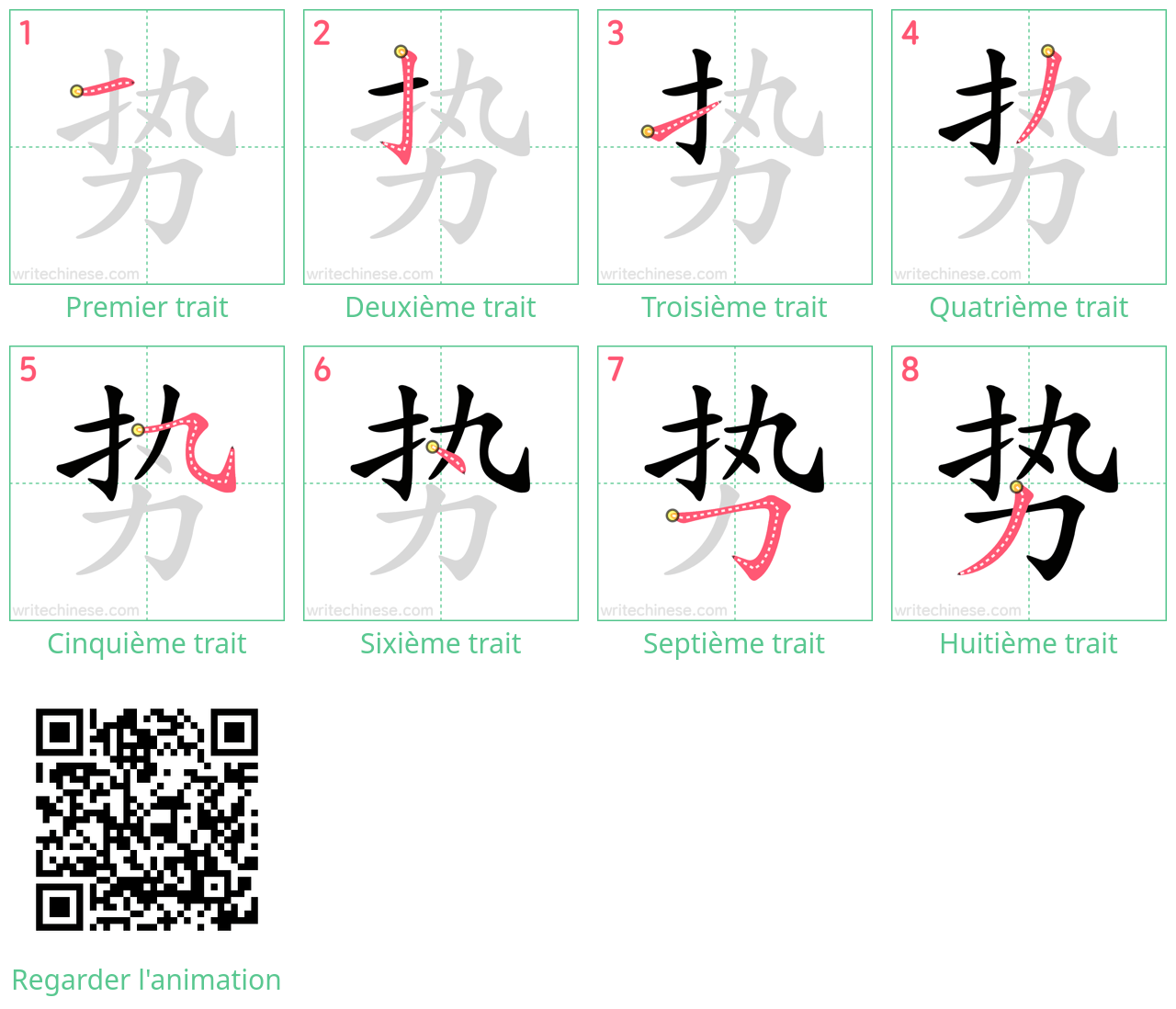 Apprenez à écrire le caractère chinois "势" en regardant l'animation de l'ordre des traits