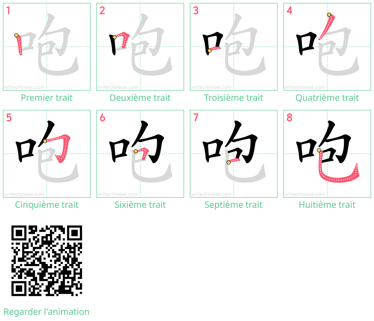 Apprenez à écrire le caractère chinois "咆" en regardant l'animation de l'ordre des traits de "咆".