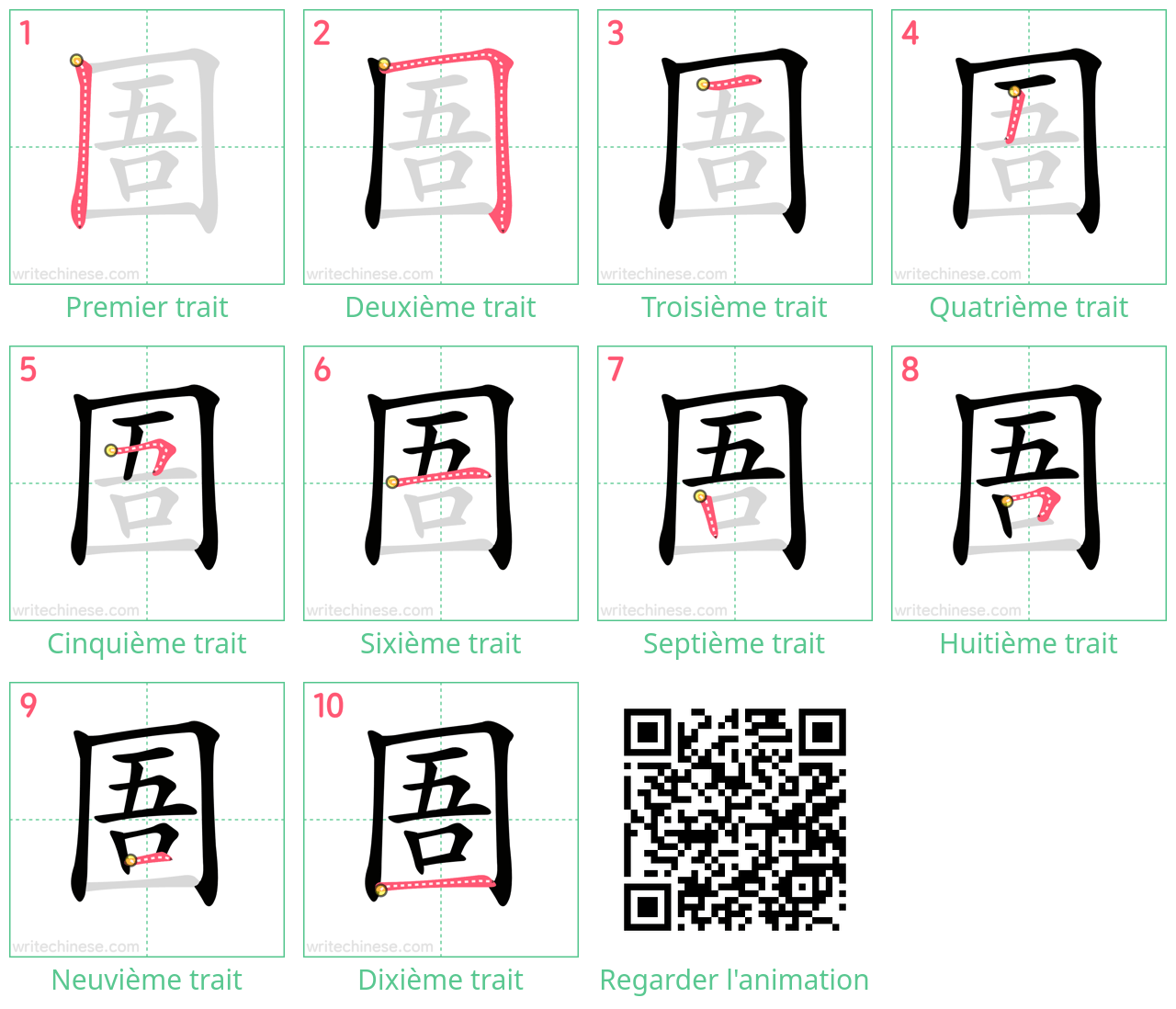 Apprenez à écrire le caractère chinois "圄" en regardant l'animation de l'ordre des traits de "圄".