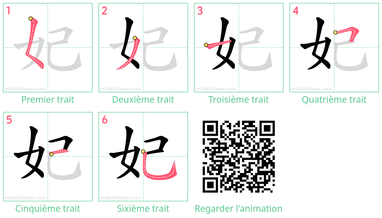 Apprenez à écrire le caractère chinois "妃" en regardant l'animation de l'ordre des traits