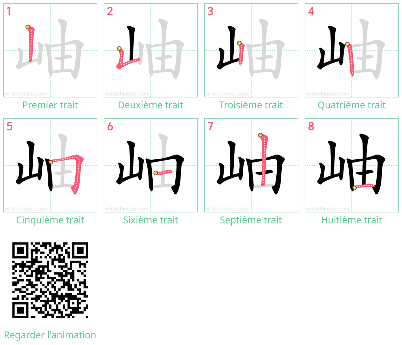 Apprenez à écrire le caractère chinois "岫" en regardant l'animation de l'ordre des traits