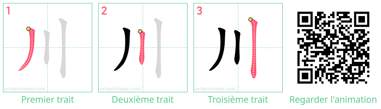 Diagrammes d'ordre des traits étape par étape pour le caractère 川