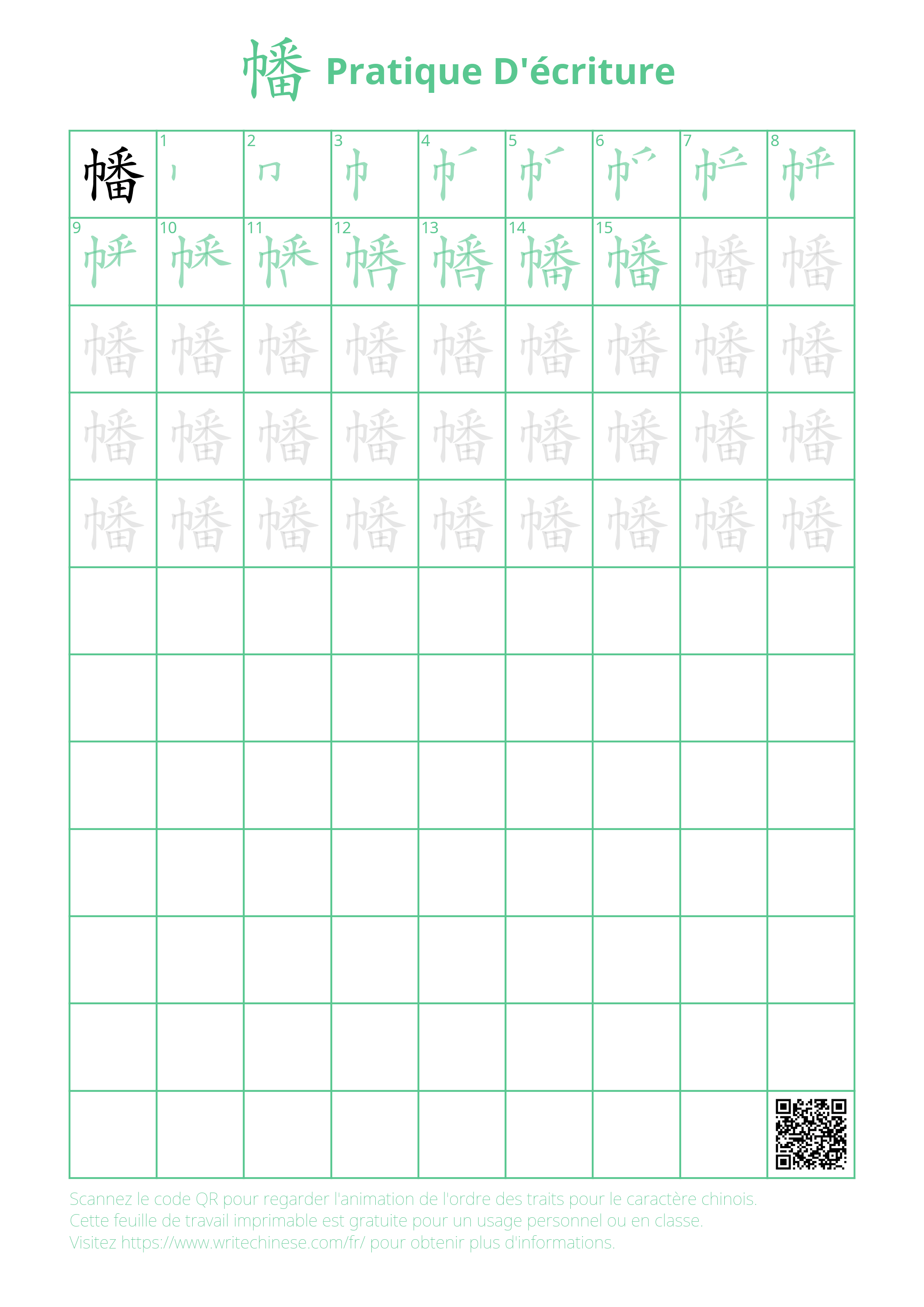 Feuille d'exercice imprimable pour la pratique de l'écriture du caractère chinois 幡