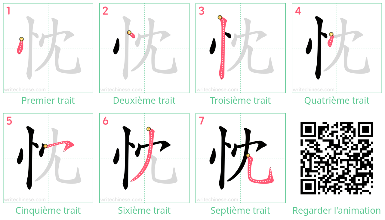 Maîtrisez le caractère chinois '忱' trait par trait grâce à des instructions visuelles étape par étape.