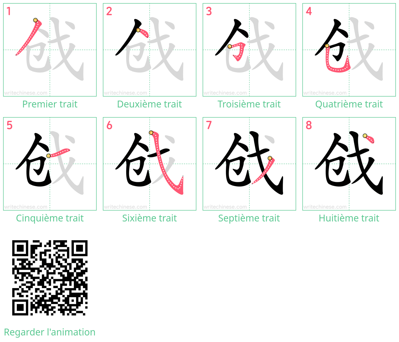 Apprenez à écrire le caractère chinois "戗" en regardant l'animation de l'ordre des traits de "戗".