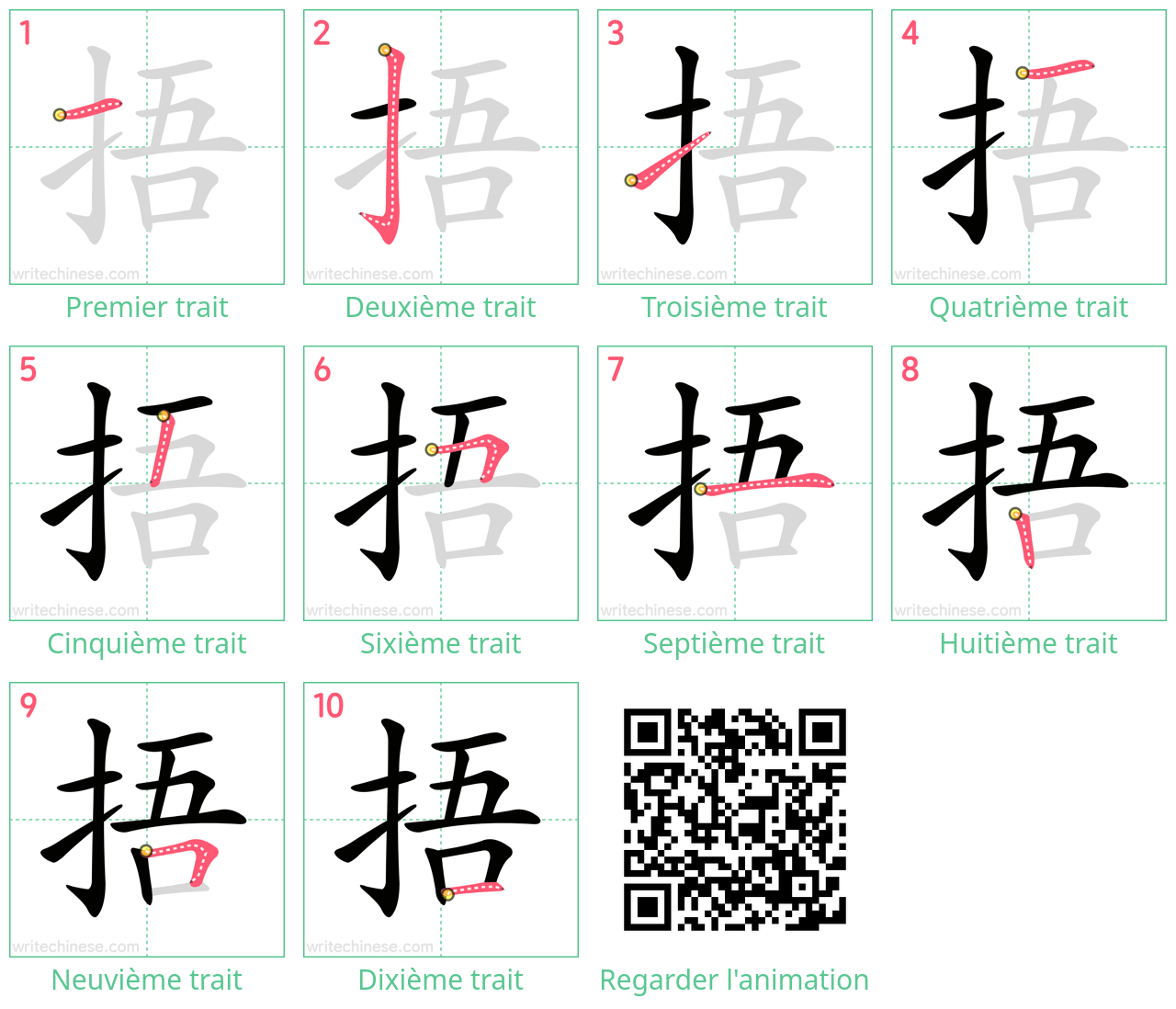 calligraphie pour écrire le caractère chinois '捂'. Vous pouvez télécharger les fiches
