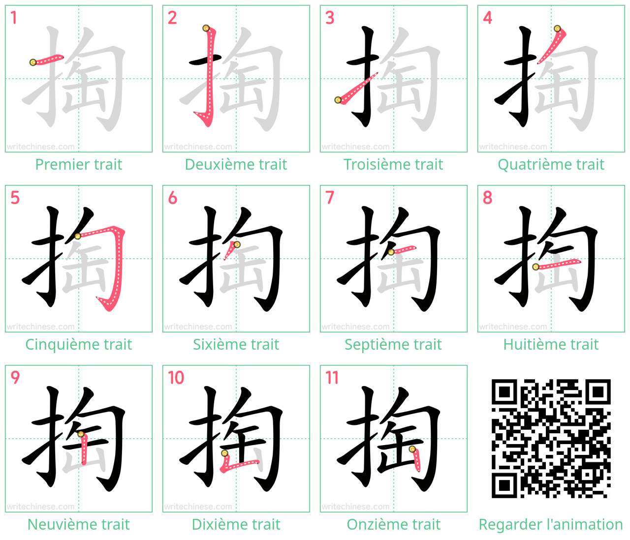 Maîtrisez le caractère chinois '掏' trait par trait grâce à des instructions visuelles étape par étape.