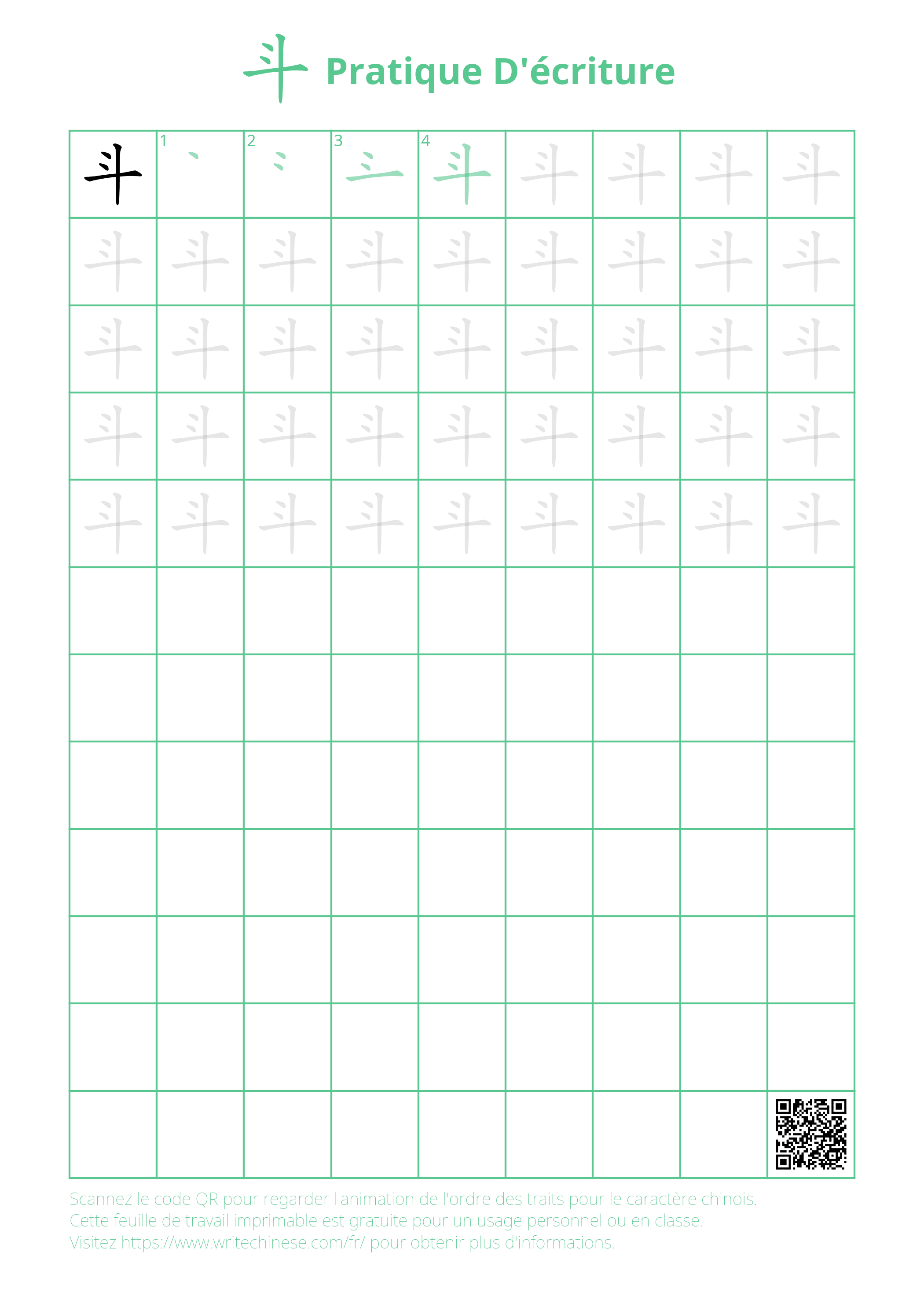 Feuilles d'exercices gratuites imprimables pour la pratique de l'écriture de 斗