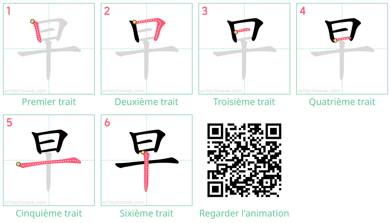 Apprenez à écrire le caractère chinois "早" en regardant l'animation de l'ordre des traits