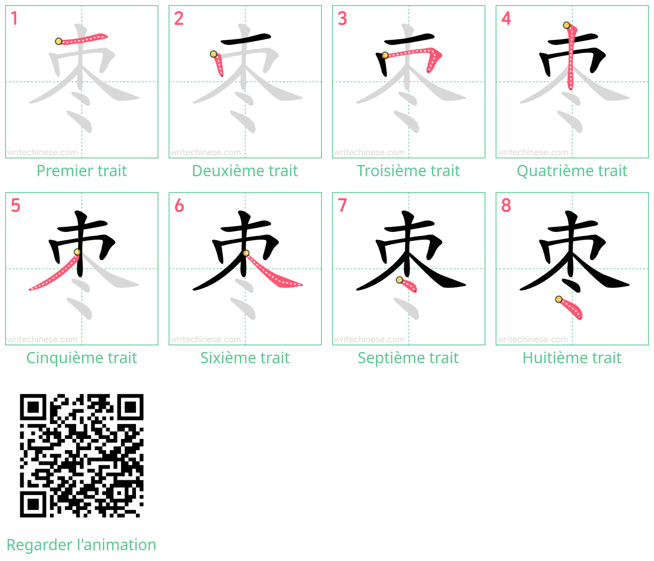 Apprenez à écrire le caractère chinois "枣" en regardant l'animation de l'ordre des traits de "枣".