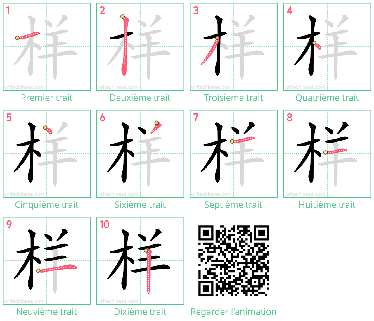 Apprenez à écrire le caractère chinois "样" en regardant l'animation de l'ordre des traits de "样".